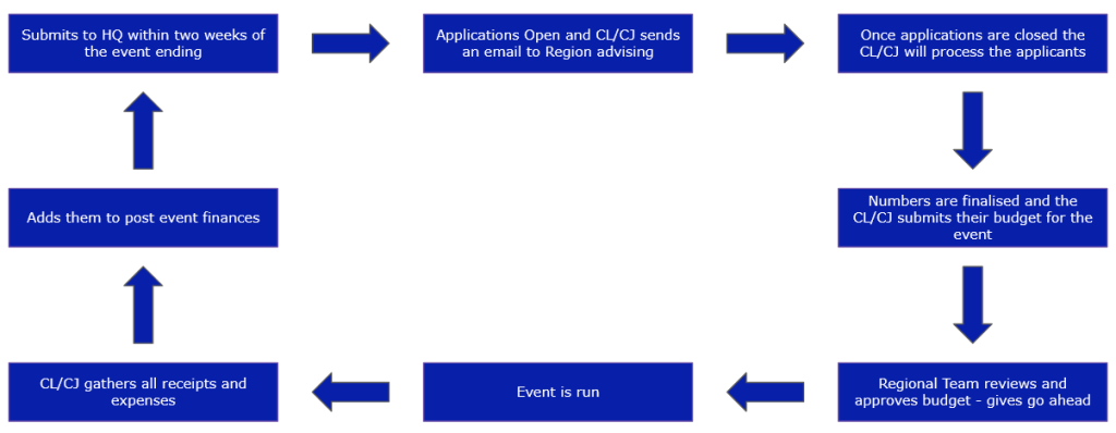 This website is here to provide administrative and practical support for Course Leaders and Chief Judges as they navigate the event lifecycle, as shown below.